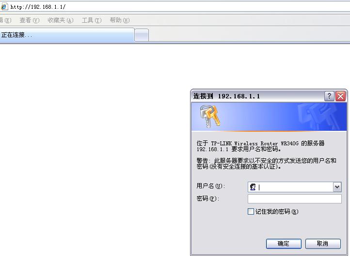 打开IE,输入192.168.1.1,对话框中输入用户名和密码