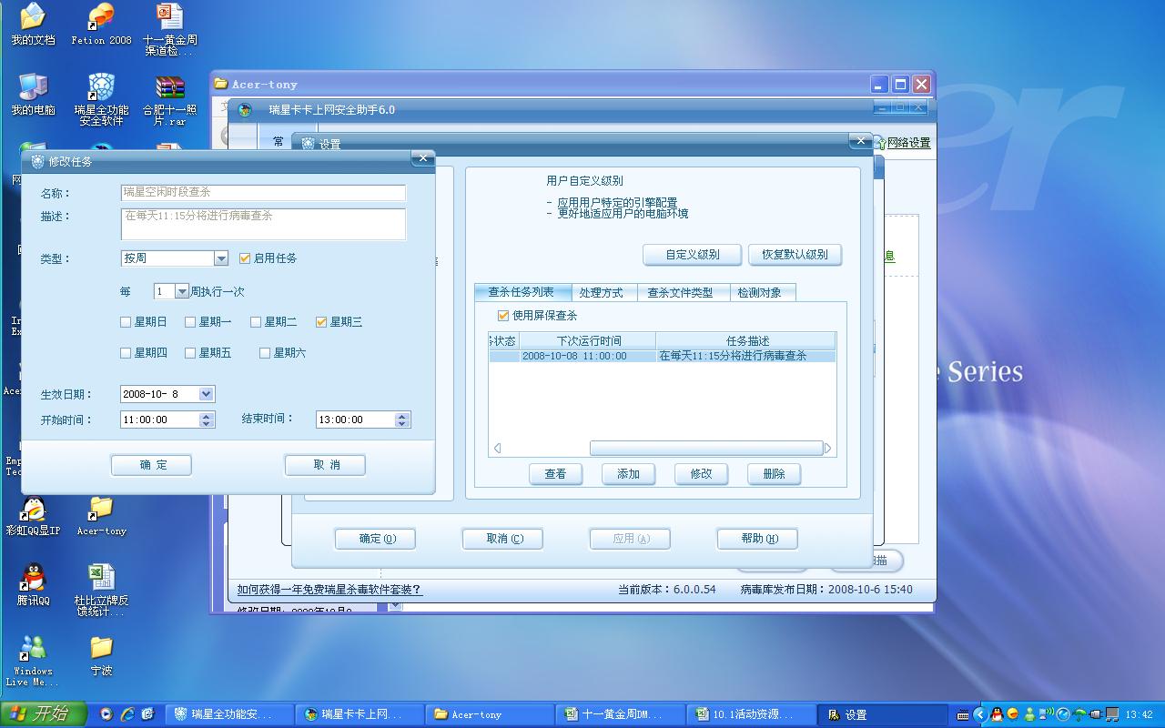 如果会默认扫描希望屏保时开始扫描到屏保结束后瑞星能记住扫描到哪里,当下次屏保的时候继续上次没有扫描完毕的地方进行扫描,直到扫描完了以后再从头开始,以前瑞星的屏保也经常屏保开始扫描到,当被中断后下次再扫描又重头开始了,这样不是很好而且始终感觉是徒劳的,所以希望这次瑞星能改进。其次希望瑞星做得更好的话作启发式查毒,这样不必限定屏保时候查杀,杀毒软件会根据用户的空闲情
