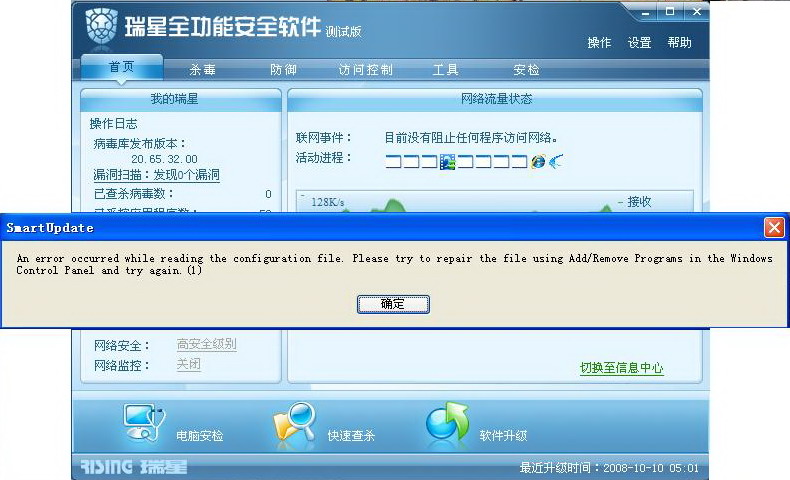 楼主先按照瑞星的提示修复一下软件看看。