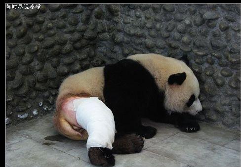 一熊猫因打群架造成腿骨折,为方便治疗所以。。。