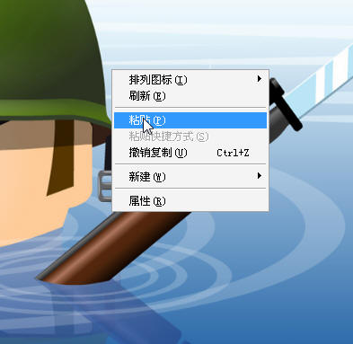 到桌面,鼠标右键【桌面】 ,弹出的菜单窗口中,选择粘贴。