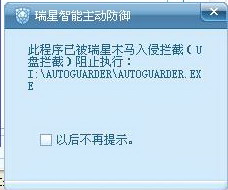 楼主在主动防御/木马入侵拦截(U盘拦截)里设置是”直接拒绝“,可以设置为”询问我“后,瑞星会提出提示,选择允许后,就可以正常使用。