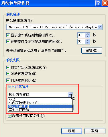 4.如果backdump文件夹为空,请右击我的电脑/属性/高级/启动和故障恢复/设置如图: