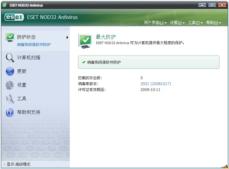 还有我就是一个很希望实现的建议。。就是瑞星每当要发布新版本的时候的前几个月可以弄一个新版建议收集板块。。。大家需要什么功能。要什么样的界面和布局。。如果瑞星觉得可以也可以采纳。。这样到测试的时候就不会这么多麻烦了啊是伐。、。、、像金山就有一个。。毒霸用户建议收集中心。。我觉得这个不错啊。。。在这个板块发帖的跟帖的要比其他板块严肃。。。。瑞星的用户还是很多的。。。。。。希望真的可以实现这个板块。瑞星不是想增加一个板块吗我希望增加的就是这样的板块。。。下面是NOD32的界面布局。。很简单。。很清晰。。。