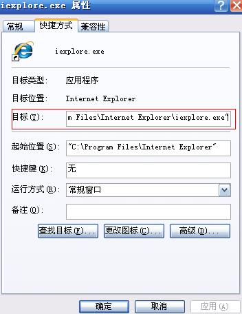 "C:\Program Files\Internet Explorer\iexplore.exe"后为空