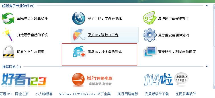 同时观察清理助手是否报系统文件被替换。4.超级兔子修复IE