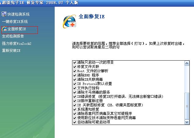 6.金山清理专家修复IE