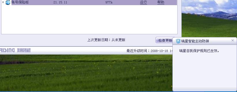 运行账号保险柜,瑞星弹出自我保护警告,看来兼容还没做足。