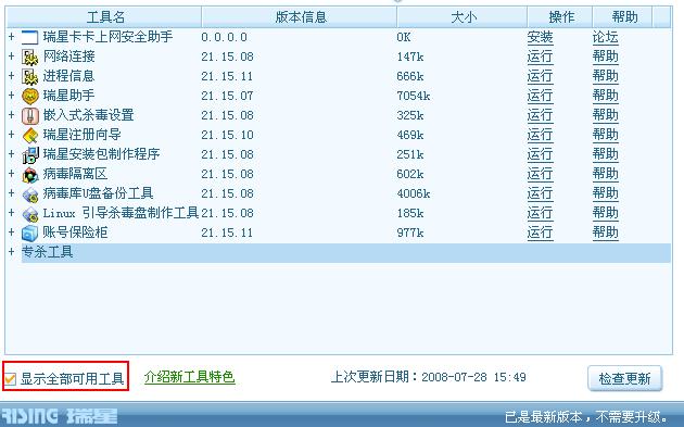 建议工具中的“检查更新”归并到“软件升级”中,方便用户操作。