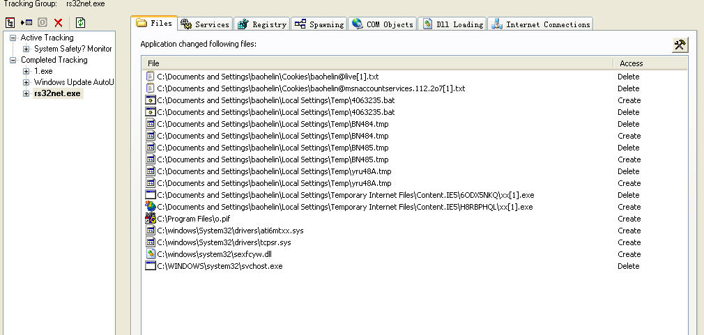 3、如果你发现并删除了病毒释放的dll、sys文件,病毒开始“动态感染”应用程序。即:你运行那个程序,它感染那个程序。