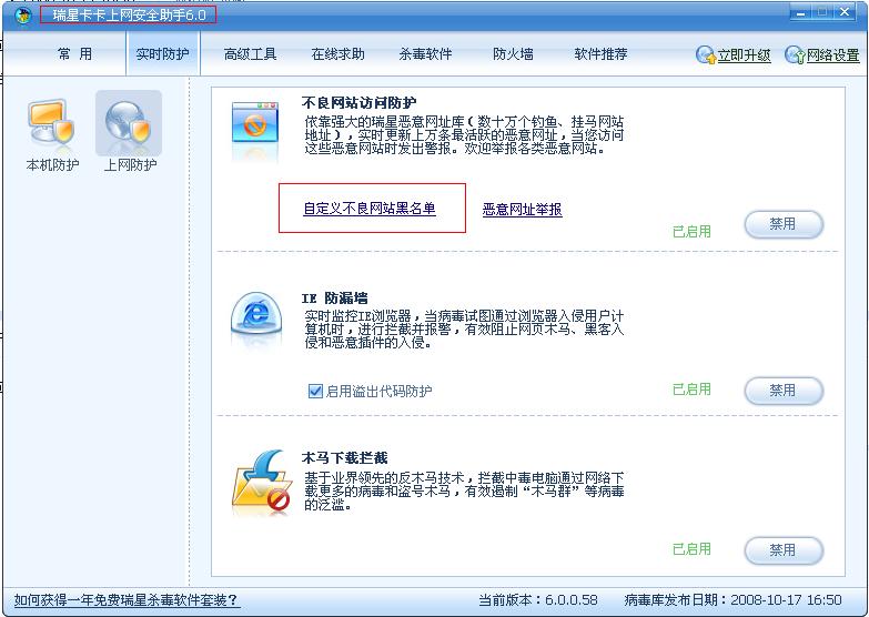 卡卡上网助手-实时防护-上网防护