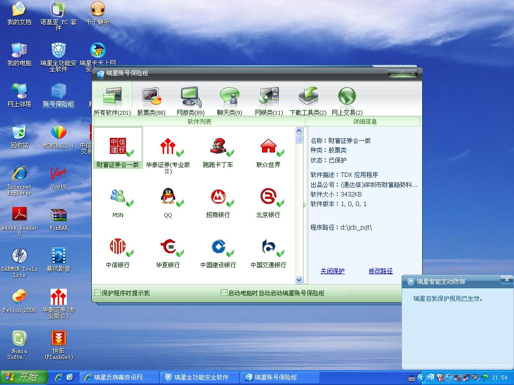 涉及的其它软件版本:瑞星账号保险柜3.0