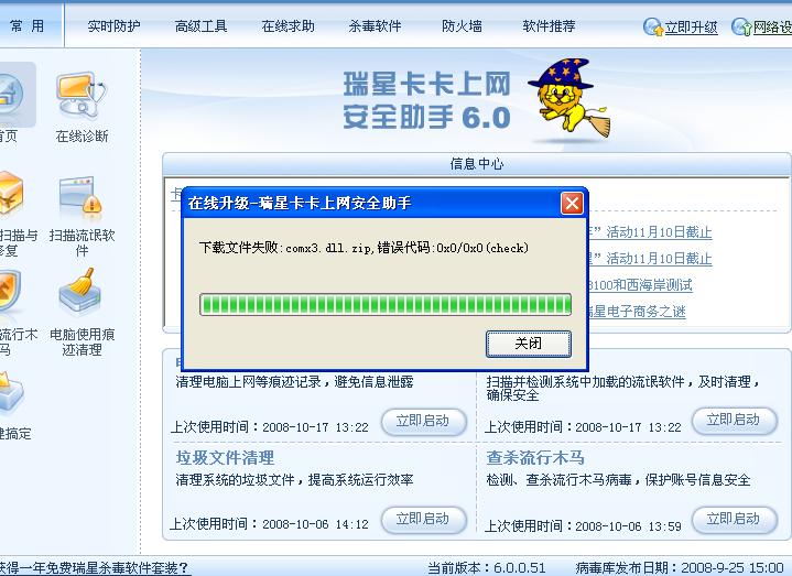 打开“我的电脑”--C盘--Program fills--Rising--AntiSpyware--Update--把里面的文件全部删除了--再升级.