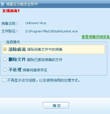 Unknown Virus 不处理 2008-10-20 15:26:15 手动查杀 D:\Program Files\360safe uninst.exe 本地服务器