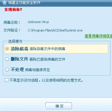 Unknown Virus 不处理 2008-10-20 15:15:49 手动查杀 C:\Program Files\ACDSee5 uninst.exe 本地服务器