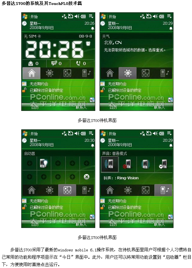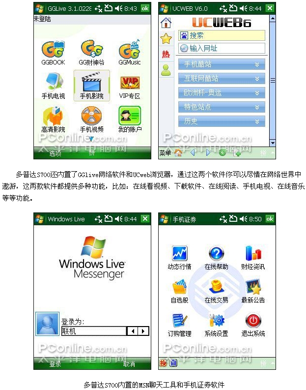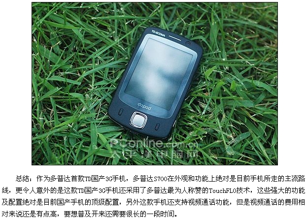 作为国产手机的“领军人物”多普达手机,无论在外观还是在功能上都代表了国内手机厂商的最尖端科技。目前最火热的TD国产3G标准也迎来了多普达的加入,这无疑为TD-SCDMA手机阵营打了一针强心剂,多普达即将在国内发布的第一款TD-SCDMA手机S700也于日前浮出水面,而且这款最新的3G手机有望在近期登陆国内市场。近日小编就拿到了这款支持视屏通话功能的多普达S700,并进行了使用,下面就为大家呈现这款手机带来的丰富多彩的功能大餐。