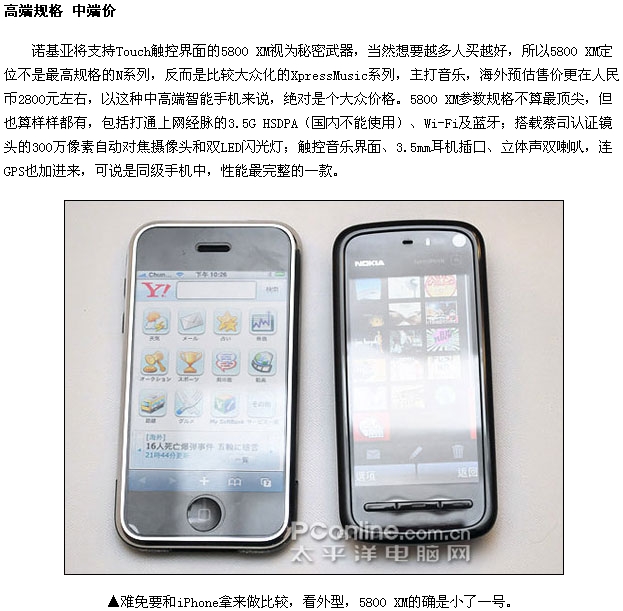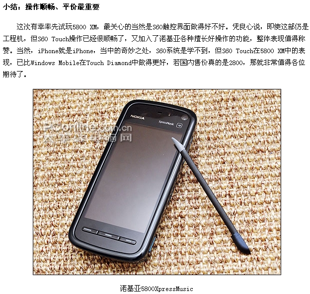 终极之作!诺基亚触摸屏S60第五版5800初接触