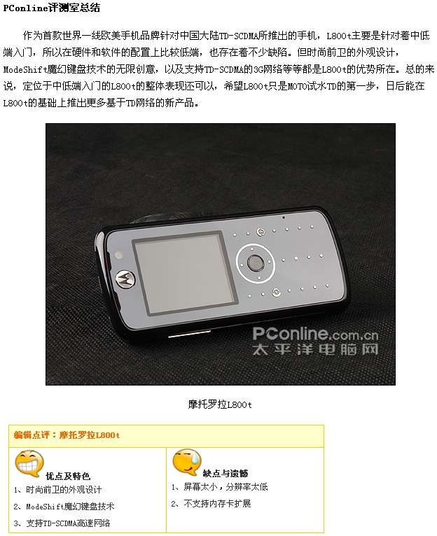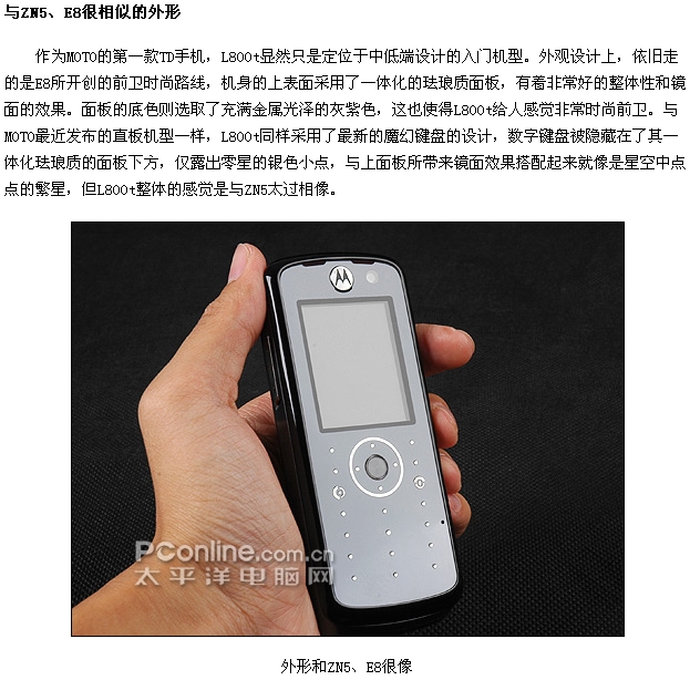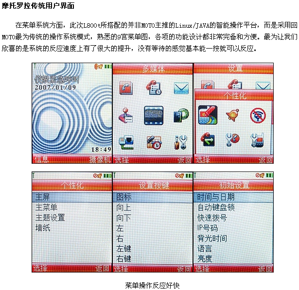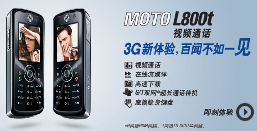 作为第一批获得TD手机生产牌照的厂商,摩托罗拉前后经历了差不多一年的时间,终于在7月28日推出了其首款支持TD-SCDMA网络的3G移动终端摩托罗拉L800t。与其他手机相比,L800t有着前卫的外观设计,强大的视频通话和高速下载的功能特点。究竟L800t的性能如何呢?作为首款MOTO的TD手机究竟有什么过人之处呢?下面我们马上送出摩托罗拉首款TD-SCDMA手机L800t的详细评测。