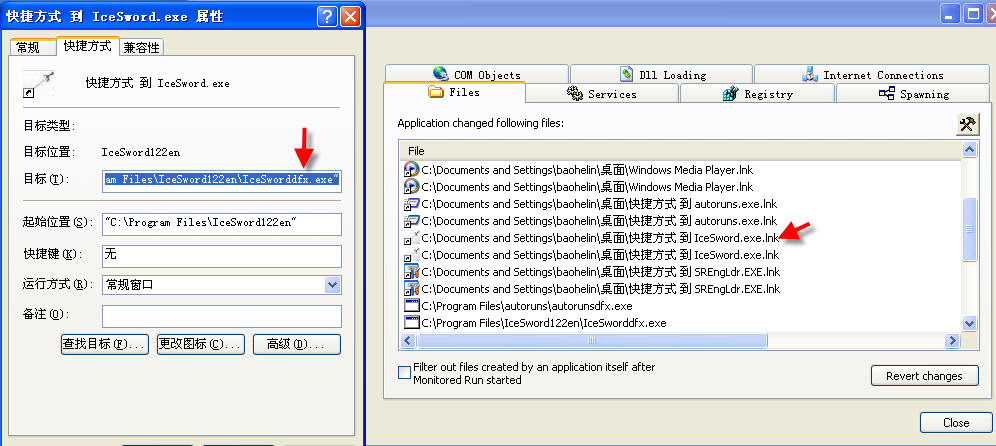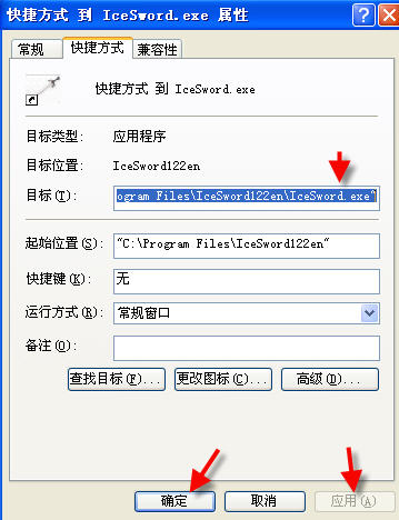 (1)将autoruns.exe、IceSword.exe、SRENG.exe、Windows Media Player.exe的快捷方式修改为: