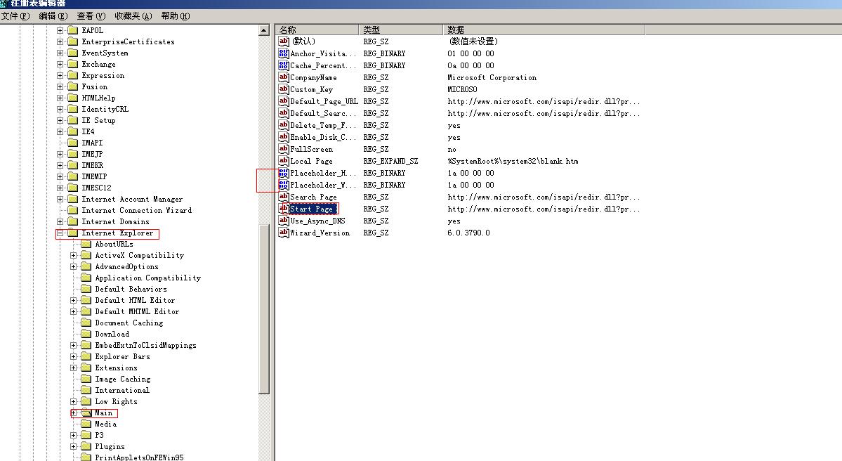 HKEY_LOCAL_MACHINE\SOFTWARE\Microsoft\Internet Explorer\Main下,在右半部分窗口中找到串值“Start Page”双击 ,将Start Page的键值改为“about:blank”