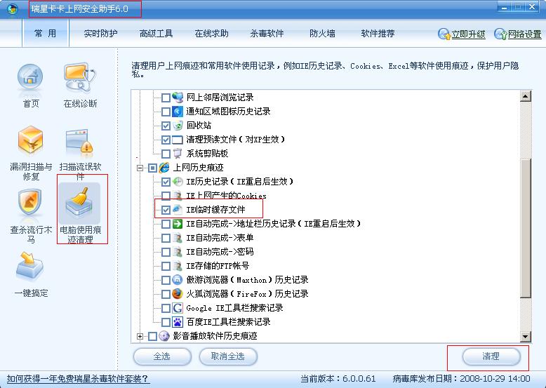没找到,原来一直用第三方软件(Index.dat Suite)来清除的,现在也没有用了.另:我的IE是7.0的,该方法(7楼的办法)也用了,没法子.谢谢!