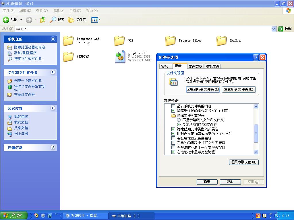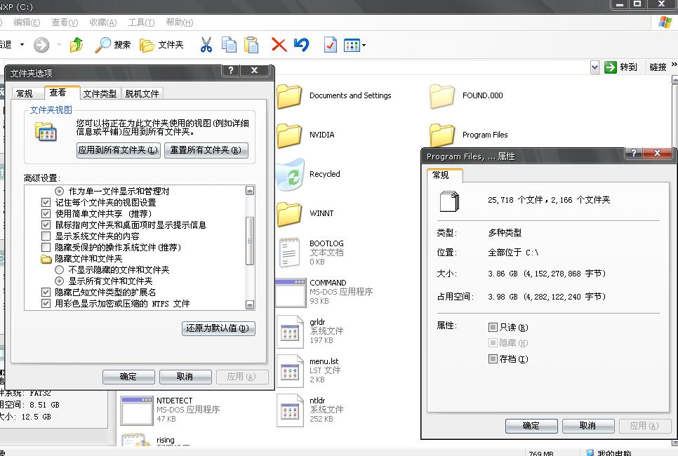 前提是8楼图片中“隐藏受保护的操作系统文件(推荐)勾选要去掉”,选择显示所有隐藏文件和文件夹,就可以了。