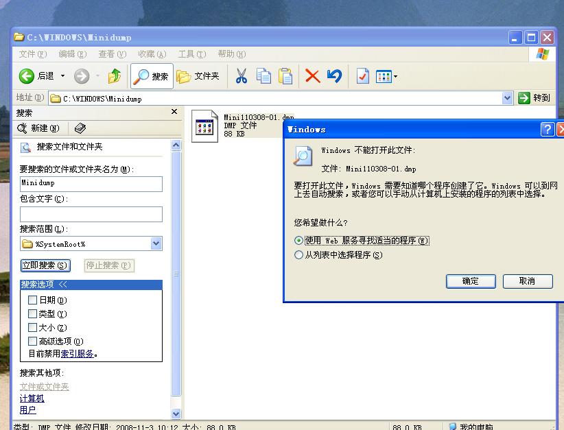 把你看到的那个nimi110308-01.dmp文件提交到这里,或者提交给瑞星,给瑞星的地址如下: