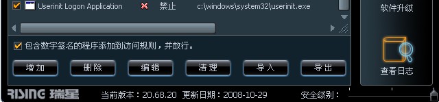 用瑞星4年多了,从来没有中过病毒,今天晚上上了一个网站,谁知道它挂了马,气死我了。用瑞星杀了一个多小时,终于杀完了,一个5个病毒。另外还有一个不知名的程序试图访问网络,被我用防火墙阻止了,请高手看看,这个程序是什么文件名: userinit logon application路径: c:\windows\systerm32\userinit.exe