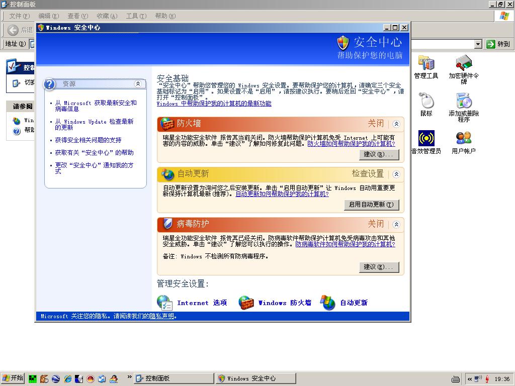 楼主看一下,是否安全中心的问题啊,等升级完,你试试将监控全部禁用,看看安全中心还报警不?