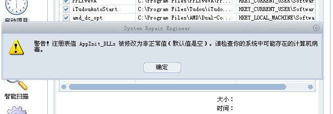 第二步 用SReng扫出来了,我是不会看,嘿嘿!不过在点“启动项目”时有警告,其中注册表中一项值不对,并提醒可能有病毒,用瑞星扫了两遍,始终未发现病毒的踪影!截图已经上传,日志也一并上传!
