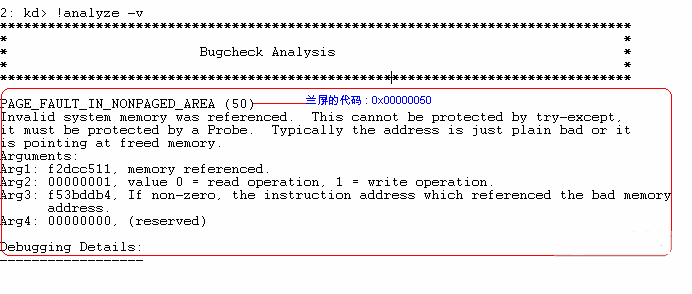 出具体是内核文件调用了哪个驱动程序后引起的兰屏。这时就需要提供更全面的完全内存转储文件或内核转储文件,通过更多的命令行来分析具体的原因了。更多的