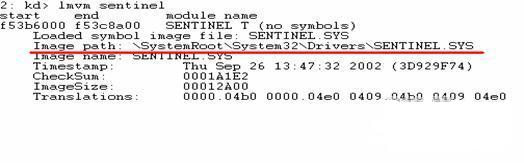 6。 你可以将你找到的这个驱动程序在Googel或者Baidu上搜索以下,很快你就会发现这个驱动是哪个第三方的应用程序,这个例子中的SENTINEL.SYS 是金蝶软件加密狗的软件模拟驱动。