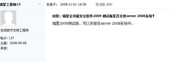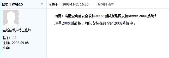 :default5:不知瑞星2008及瑞星全功能2009是否支持server 2008系统?