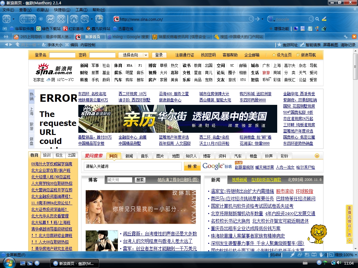 用户系统信息:Mozilla/4.0 (compatible; MSIE 7.0; Windows NT 6.0; SLCC1; .NET CLR 2.0.50727; Media Center PC 5.0; .NET CLR 3.0.04506; MAXTHON 2.0)