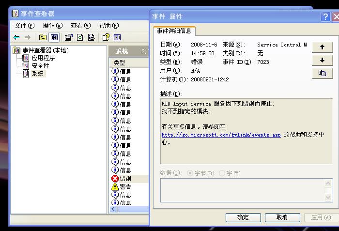 解决HID Input Service启动就提示系统找不到指定文件