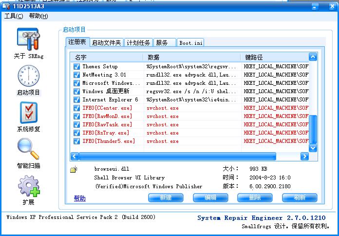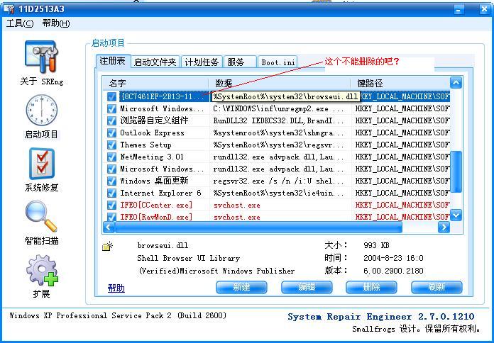 4.使用SREng修复,删除驱动,注册表之类。我当时比较在意的是下图中的两项还