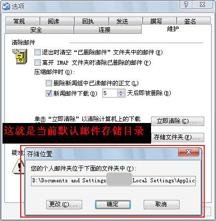 还有我的OE的存储路径还是以前的没有改,这样是不是还存在问题啊? 应为存储文件夹里面有很多什么"收件箱1,收件箱2,...,发件箱1, 2..
