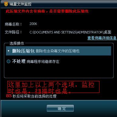 因为我在设置里(监控扫描都是)设置成自动删除或清除病毒文件,扫描后删除时却不断弹出这个窗口让你点。那这和