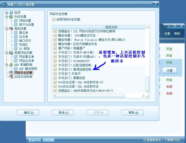 建议增加防上兴远程控制木马,最近很多人用这个毒别人电脑