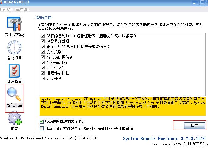 PS:如主程序SREng**.exe无法运行,导致无法扫描日志