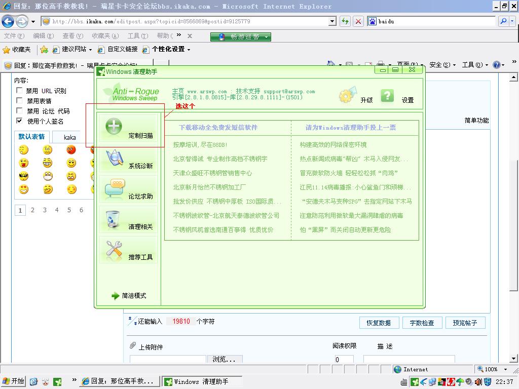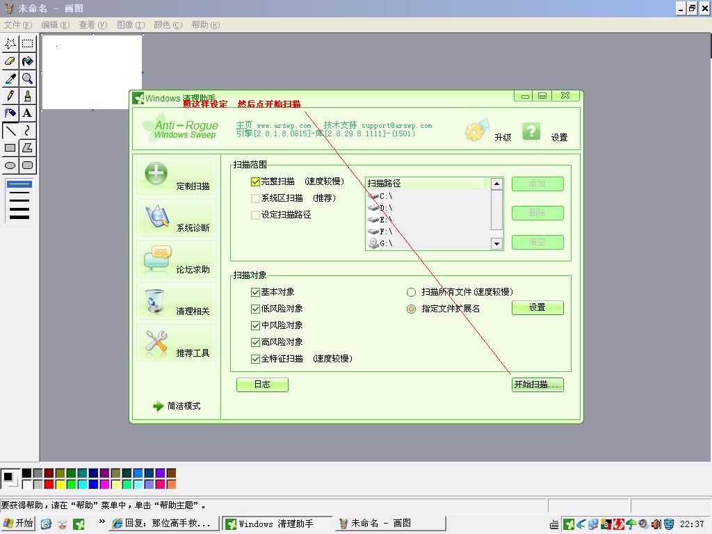 扫日志前建议清理助手清理系统http://www.arswp.com/download.html解压后运行,升级清理助手,全盘扫描,只清理高危险项目,其他项目请自己判断