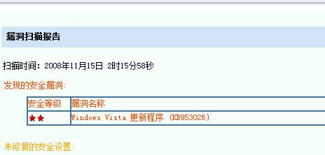 windows vista sp1系统 安装了瑞星最新版本,扫描漏洞,检测一个,但是安装不到。
