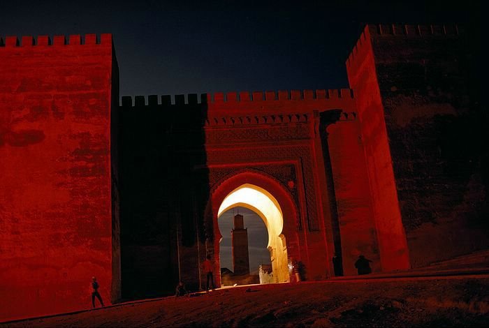 摩洛哥的清真寺,拱形门呈现出伊斯兰教月牙型传统符号