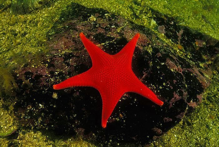 加拿大鲜红色海星,他们用鲜艳的颜色来吓走天敌