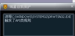 这个 是drwtsn32.exe(Dr. Watson)是一个Windows系统内置的程序错误调试器 如果确定没被感染 可以添加到主动防御白名单 就不会有这个提示