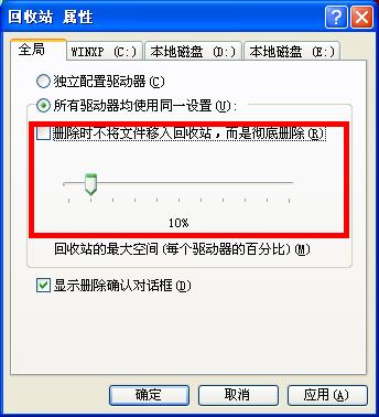 开始-运行-输入gpedit.msc--回车--用户配置-管理模板-Windows组件-Windows资源管理器,单击之。在右边窗口里找到 “不要将已删除文件移到回收站”双击之,选择“已禁用”。
