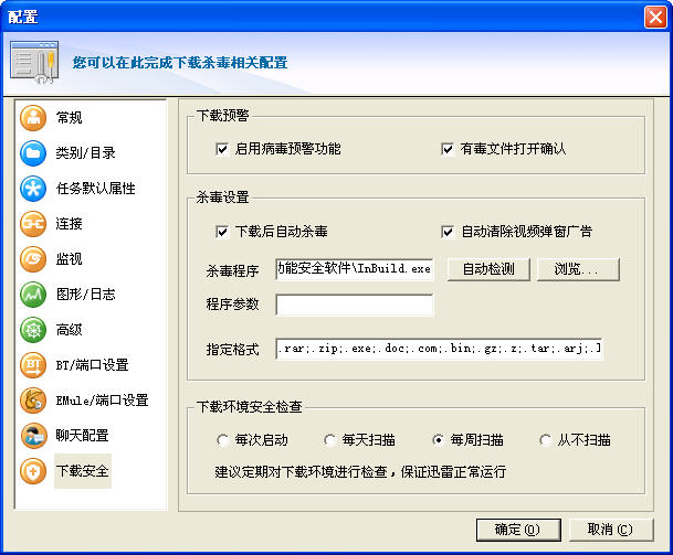 问题现象:每次迅雷下完RAR格式文件就弹出瑞星嵌入式杀毒设置窗口
