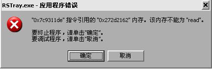RSTray.exe应用程序发生异常错误。开机后不久就弹出了。重新开启不到几分钟又有了、