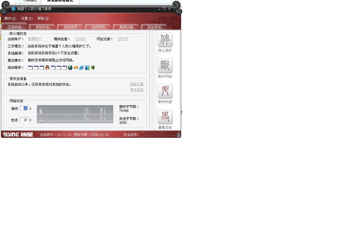 由于主板电池没电系统时间变更,调整后防火墙就不能启动了,也不监控,但是在开始-程序-瑞星个人防火墙-瑞星个人防火墙主程序和升级程序都能正常使用,不知道是什么原因,希望能帮助解决!!