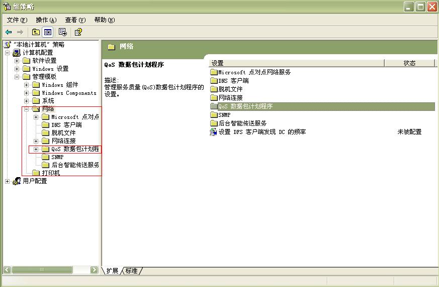 重装系统以后打开组策略.组策略--计算机配置→管理模板里没有网络这一项.好像缺了几项.看不到[→QoS数据包调度程序限制可保留带宽]有图请指教。谢谢!!!